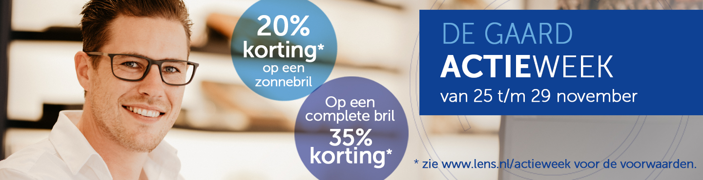 Goed nieuws. De actieweek komt er weer aan. Hét moment om een bril of zonnebril uit te zoeken. Van dinsdag 25 november tot en met zaterdag 29 november organiseert Lens de Gaard de actieweek met veel extra keuze en ook extra voordeel.